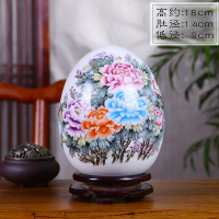 景德镇陶瓷花瓶摆件粉彩薄胎富贵蛋吉祥蛋现代中式家居装饰品花开富贵 送底座