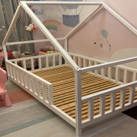 苏宁放心购Ins实木原木男孩床儿童床简北欧风落地床少女单人树屋小房子A-STYLE
