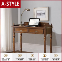 苏宁放心购美式实木书桌欧式复古电脑桌书房办公桌写字台小户型书桌学习小桌A-STYLE家具