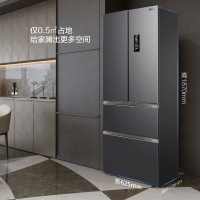 美的325升法式多门四门双开门小型冰箱风冷无霜纤薄变频一级节能 布朗棕