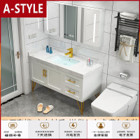 苏宁放心购简约北欧轻奢智能浴室柜实木落地式卫浴柜组合大理石面盆柜定制A-STYLE