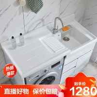 [直播特卖]阳台洗衣机柜子切角定制洗衣台带搓板一体石英石不锈钢洗衣柜组合芭德雅