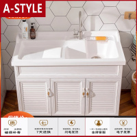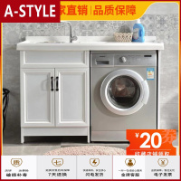 苏宁放心购阳台太空铝洗衣柜石英石洗衣池带搓衣板洗衣机浴室柜洗手盆柜组合A-STYLE