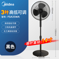 美的电风扇落地扇家用台立式低噪节能省电宿舍强大风力电扇可升降 -黑色