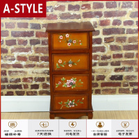 苏宁放心购美式乡村彩绘实木家具餐边四斗柜厅边玄关储蓄柜卧室床头抽屉柜酒红色客厅卧室欧式田园A-STYLE家具
