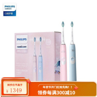 飞利浦(PHILIPS) 电动牙刷 净齿呵护型 成人声波震动牙刷 2种强度+力度感应|情侣套装