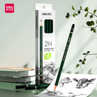 得力(deli)7082安全石墨铅芯素描绘图2H木质铅笔学生铅笔 12支/盒