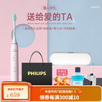 飞利浦(PHILIPS)电动牙刷 成人充电式声波震动情侣牙刷(自带刷头*2)智能净白 牙龈呵护 柔美樱粉