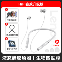 联想(Lenovo)蓝牙耳机 HE05X运动挂脖 白色IPX5级防水汗 入耳式蓝牙5.0耳塞 隔音降噪环绕立体声好音质