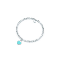 [直营]TIFFANY&CO.蒂芙尼 Return to Tiffany系列 925银 珠式心牌蓝色珐琅女士手链 送恋人