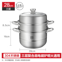 美的喆物蒸锅家用304不锈钢加厚锅双多3三层电磁炉燃气灶多功能大蒸笼 *[304不锈钢/28cm]/美的 26cm