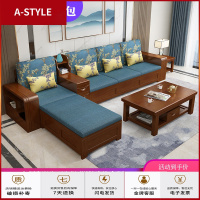 苏宁放心购实木沙发布艺组合现代新中式冬夏两用储物转角贵妃客厅整装小户型A-STYLE家具