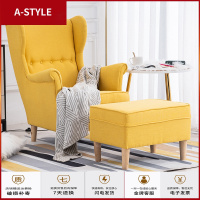苏宁放心购美式轻奢老虎椅单人沙发椅北欧布艺休闲单椅懒人阳台卧室高背躺椅A-STYLE家具