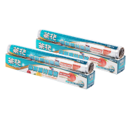 茶花一次性保鲜膜切割器大卷厨房家用经济装食品手撕点断式多用途[保鲜膜二合一2组共4卷]
