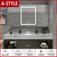 苏宁放心购轻奢浴室柜组合现代简约卫生间洗手洗脸双盆大理石台面浴室柜定制A-STYLE
