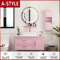 苏宁放心购粉色轻奢浴室柜组合落地卫生间卫浴柜橡木边柜储物浴室柜台上盆A-STYLE