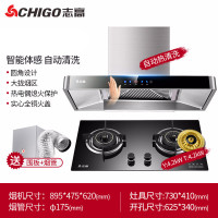 Chigo/志高 吸抽油烟机燃气灶套餐烟机灶具套装家用厨房自动清洗 智能体感+自动清洗圆角+猛火圆形4.2kw双灶