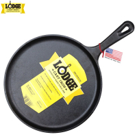 Lodge美国进口无涂层不粘铸铁平底烙饼锅煎锅披萨烤盘煎饼锅27cm