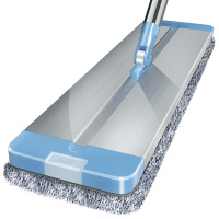 利临 铝合金平板拖把家用大号42cm免手洗懒人拖把伸缩杆式不锈钢拖把神器家用地拖加拖布共4块布 (蓝色)