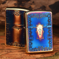 美国ZIPPO打火机 芝宝 日版熏铜财富之门金色富贵门 镀银古董门美国原装正品防风煤油点烟器