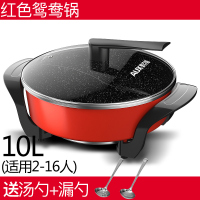 奥克斯鸳鸯电火火锅锅家用多功能宿舍电炒菜炒锅电热煮烧烤一体锅 10L加厚款红色鸳鸯锅+大礼包