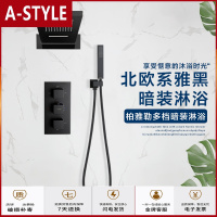 苏宁放心购卫浴智能恒温隐藏式暗装花洒套装黑色嵌入墙式瀑布淋浴家用A-STYLE