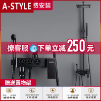 苏宁放心购淋浴花洒套装家用挂墙式喷头卫生间智能恒温增压黑色沐浴器可升降A-STYLE