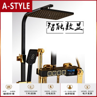 苏宁放心购淋浴花洒套装家用全铜卫浴黑色沐浴挂墙式数显恒温器浴室淋雨喷头A-STYLE