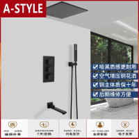 苏宁放心购暗装隐藏埋墙嵌入墙式亚光黑吊顶吸顶式恒温淋浴花洒套装A-STYLE