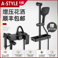 苏宁放心购淋浴花洒套装家用冷热水明装全铜黑色增压手持挂墙式升降喷头A-STYLE