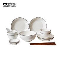 富昱景 北欧简约陶瓷碗碟套装网红家用餐具套装碗盘碗筷黑线51件套
