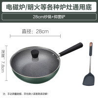 麦饭石不粘锅炒锅家用无烟炒菜锅电磁炉燃煤气灶适用无涂层平底锅新丰腾金典28cm炒锅+普通盖