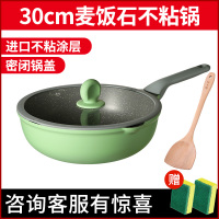 麦饭石不粘锅炒锅家用无烟炒菜锅电磁炉燃煤气灶适用无涂层平底锅新丰腾金典30cm炒锅+普通盖