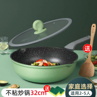 [不粘炒锅32cm][原厂木铲] 炊大皇麦饭石不粘锅家用炒锅平底锅不沾炒菜锅电磁炉燃气灶通用
