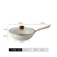 麦饭石家用炒菜锅小号煎炒两用电磁炉专用平底锅小煎锅炒锅 白色28cm+盖子