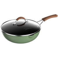 美的不粘锅麦饭石色炒锅电磁炉燃气煤气灶适用家用炒菜锅专用炊具配木铲 金色