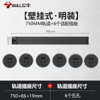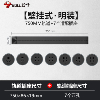 公牛(bull)0.75米黑色轨道+7个五孔适配器可移动电力轨道插座厨房专用无线滑轨接线板家用插排插座
