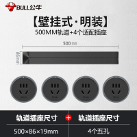 公牛(bull)0.5米黑色轨道+4插孔可移动电力轨道插座厨房专用无线滑轨接线板家用插排插座