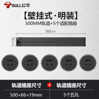 公牛(bull)0.5米黑色轨道+5插孔可移动电力轨道插座厨房专用无线滑轨接线板家用插排插座