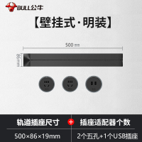 公牛(bull)0.5米黑色轨道+2个5孔适配器可移动电力轨道插座厨房专用无线滑轨接线板家用插排插座