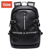 第九城(V.NINE) 男士双肩包背包男款时尚休闲PU防泼水男包运动潮流大容量电脑包书包 黑色