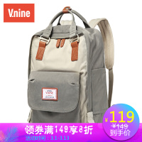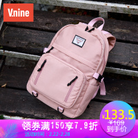 第九城(V.NINE) 双肩女大容量电脑包14英寸原宿风大中学生休闲书包情侣款