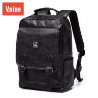 第九城(V.NINE) 双肩包男士潮流复古PU软皮背包大容量防泼水14英寸电脑包时尚韩版学生书包 黑色