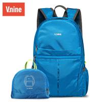 第九城(V.NINE)防泼水折叠双肩包男女通用多功能户外运动学生书包时尚潮流背包蓝色#可折叠防泼水#