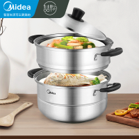 美的喆物 蒸锅家用蒸煮加厚不锈钢蒸鱼神器电磁炉煤气灶蒸馒头锅26CM口径 不锈钢