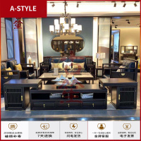 苏宁放心购新中式实木沙发组合现代中式简约轻奢皮艺沙发大户型别墅定制家具A-STYLE家具