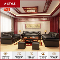 苏宁放心购高端酒店大厅贵宾接待沙发茶几组合商务会客中式真皮办公室皮沙发A-STYLE家具