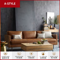 苏宁放心购北欧美式客厅轻奢PU简约现代家具双人三人工业风loft皮艺铁艺沙发A-STYLE家具
