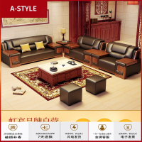 苏宁放心购真皮办公沙发茶几商务别墅现代中式三人位组合办公室接待会客沙发A-STYLE家具