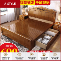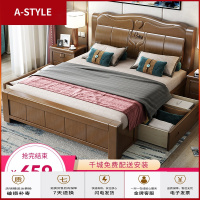 苏宁放心购中式实木床1.8米主卧双人床简约现代经济型1.5m单人储物高箱婚床A-STYLE家具